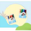 Zoals je kunt zien op de foto’s krijg je het gebedskleedje in een kleurige box samen met 12 verschillende kleuren textielstiften.