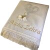 Design and Pray heeft ervoor gekozen om de namen onderin het gebedskleed te borduren, zodat je niet afgeleid raakt tijdens het gebed. Namen die verwijzen naar Allah swt worden standaard rechtsmidden verticaal geborduurd, zodat je niet per ongeluk op de naam kan staan.